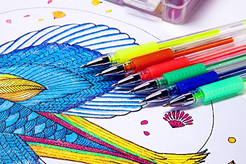 Premium Quality Glittery Gel Pens: We know one Shortcoming of any gel pen is clogging or skipping. So we have tried to improve both ink and tips of the pen. The 0.8 - 1.0mm tips make sure ink flows smoothly whether you are coloring in a coloring book, doing a project, making cards. Reduce stress and fill your life with colors, creativity and happiness.