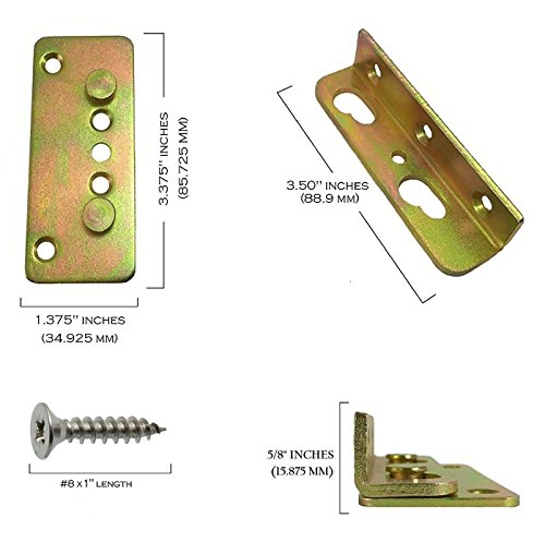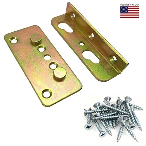 Premium No-Mortise Bed Rail Fittings (Complete Set of 4, #8 x 3/4" inch Wood Screws Included)