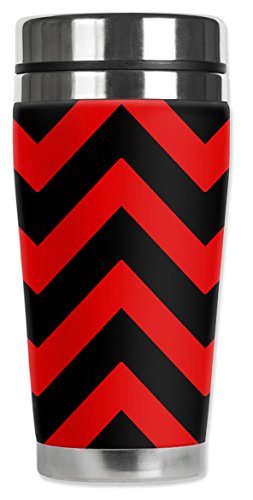 Mugzie 998-MAX "Red Chevron" Stainless Steel Travel Mug with Insulated Wetsuit Cover, 20 oz, Black