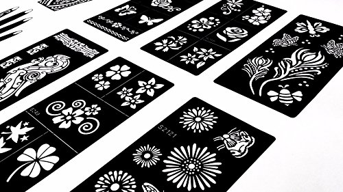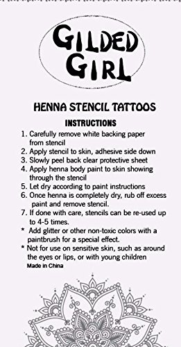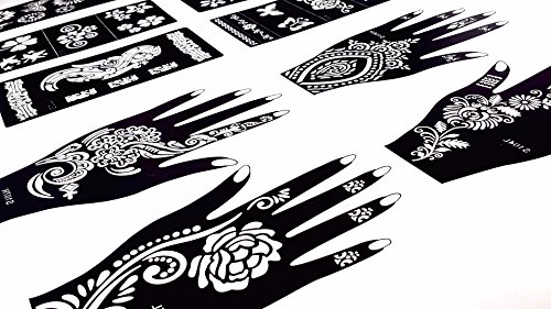 A stunning collection of original beautiful henna tattoo stencils body art floral and Indian designs, perfect for any event - birthday parties, concerts, nights out or simply to experience exotic and eye-catching pieces of body art! Package contains 10 high-quality stencils individual designs. Safe and non-toxic. Great for beginners, the self-adhesive stencils are quick to put on and remove. Easy-to-read instructions are included.Feature
