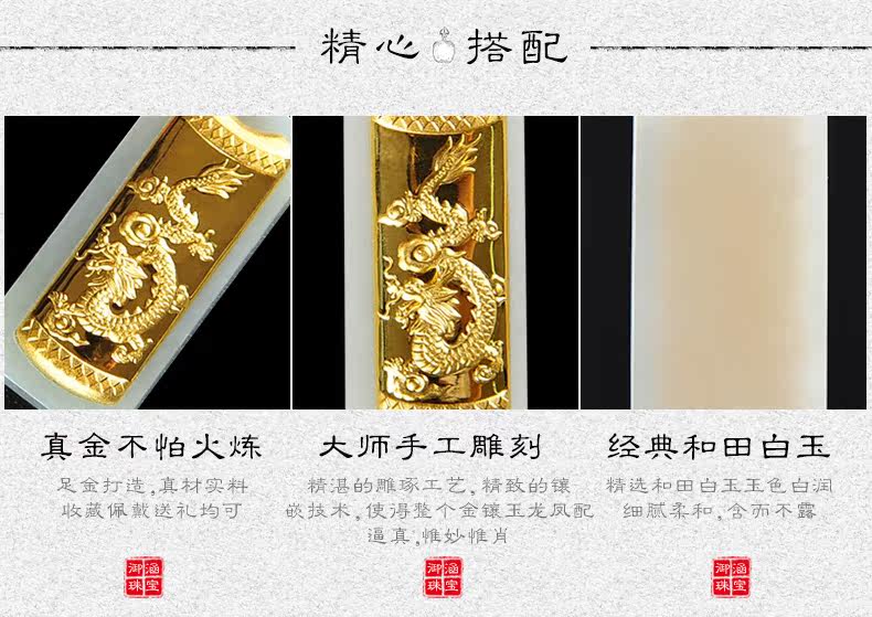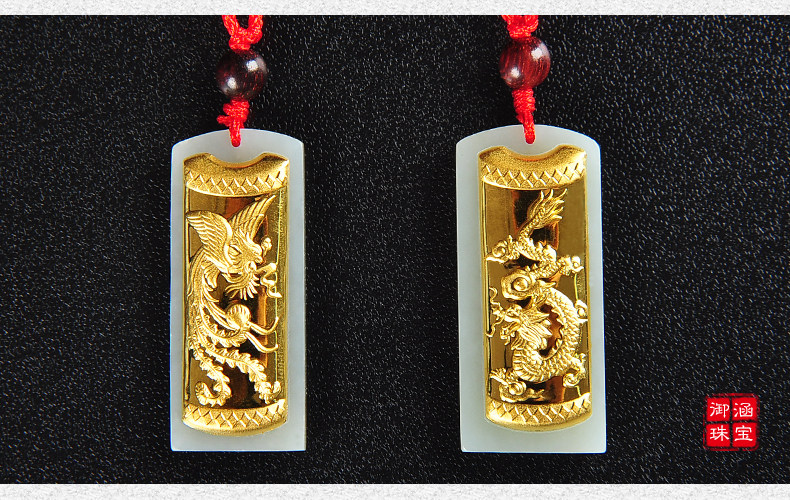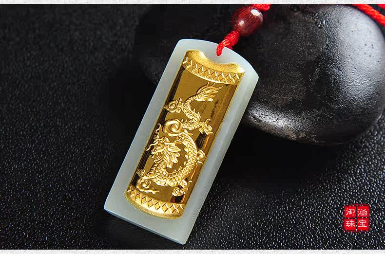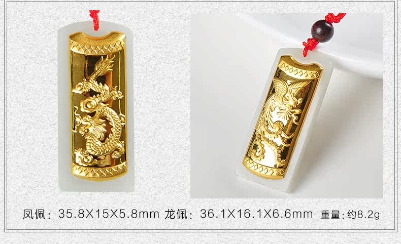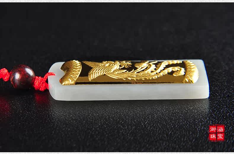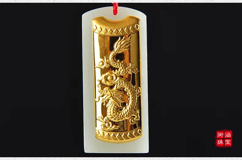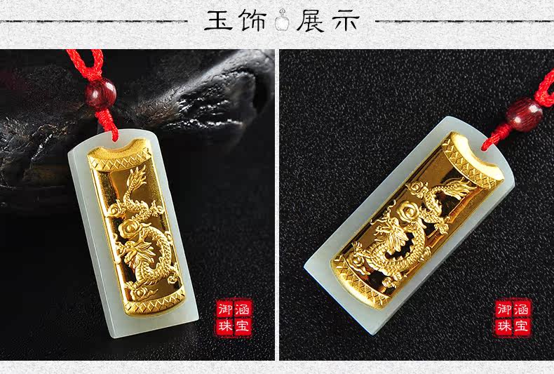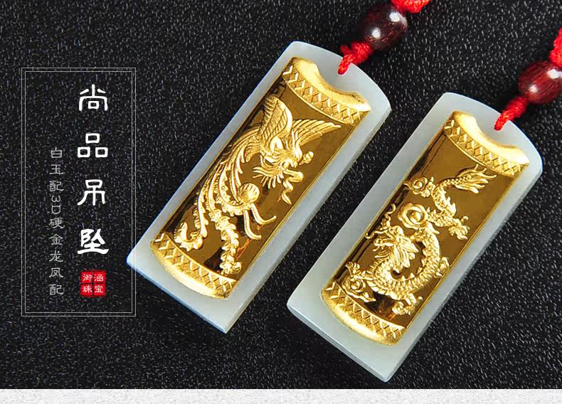 和田白玉金镶玉玉吊坠男女款龙凤玉佩天然玉石玉器项链挂件