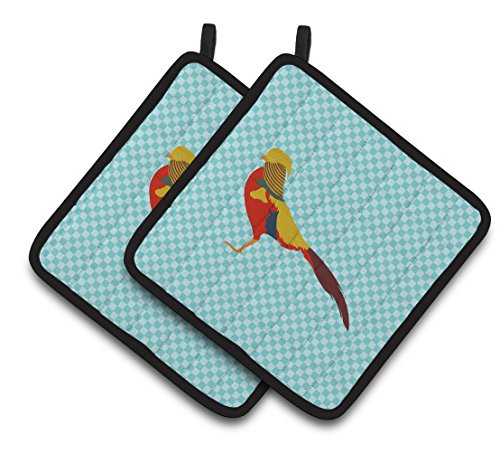 Caroline's Treasures BB8102PTHD Golden Or Chinese Pheasant Blue Check Decorated Pot Holder, 7.5" x 7.5", Multicolor