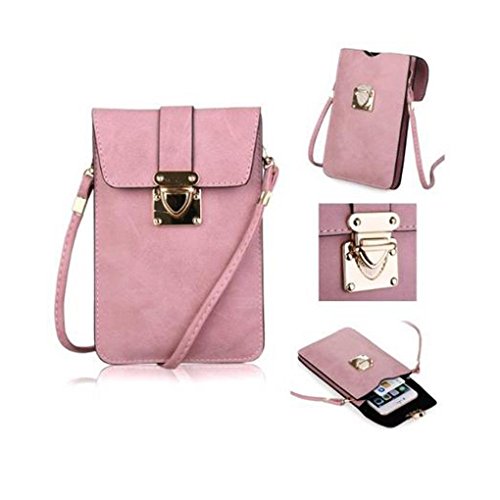WaitingU Hot Universal Cross-body Large Multipurpose Cell Phone Case Two Separated Pouches Stylish Cute Girls Purse Soft PU Leather Mobile Pouch Flip Cover Mini Shoulder Bag with Detachable Strap for Apple iPhone iPhone 6 Plus 6 5 5S 5C Samsung Galax