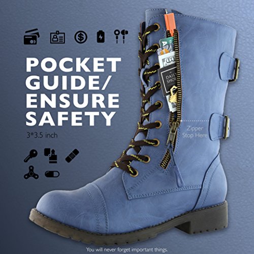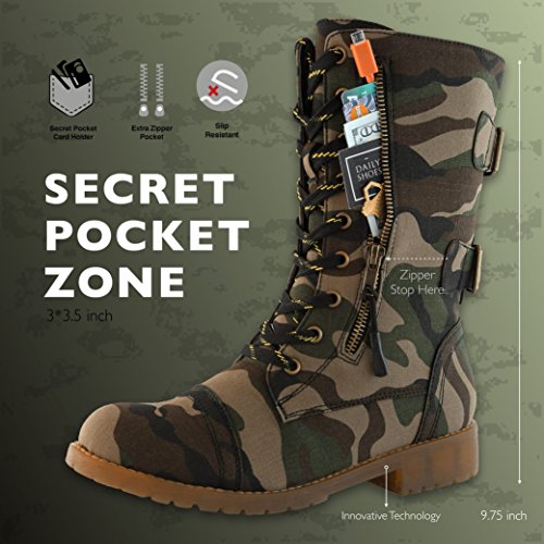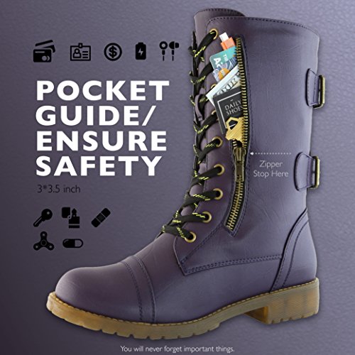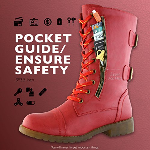 ***Tired of having to carry a bag just to keep a few small items with you when you're shopping or exploring the great outdoors? The DailyShoes Women's Military Combat Boots with Pocket will let you travel lighter and have you looking stylish wherever you go!*** Design and built with an innovative design that lets you leave your bag behind. Each boot is outfitted with a roomy pocket that is 3 inches by 3.5 inches in size. You get plenty of space for storing your credit cards and cash 0