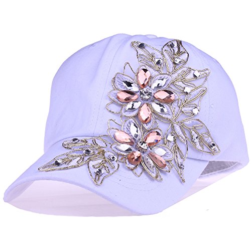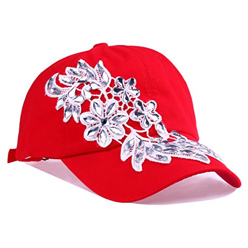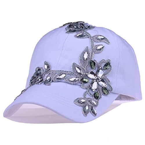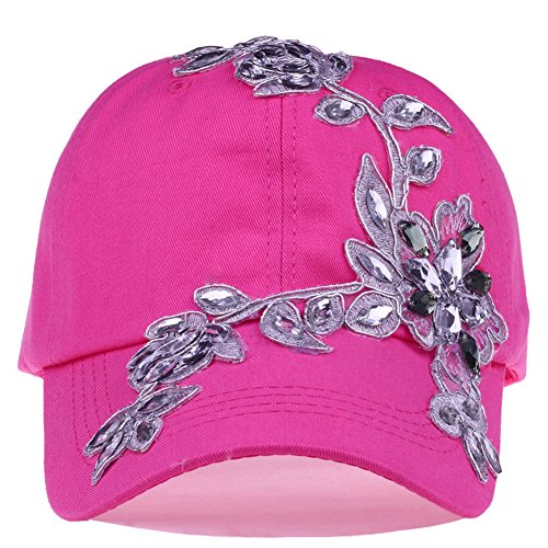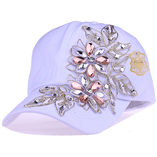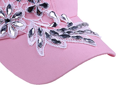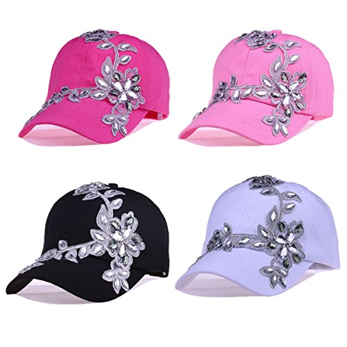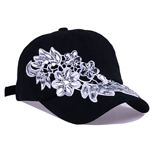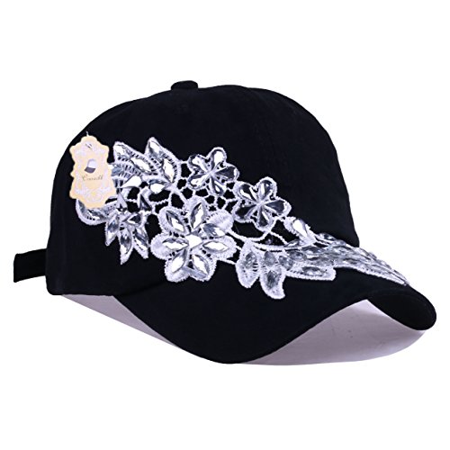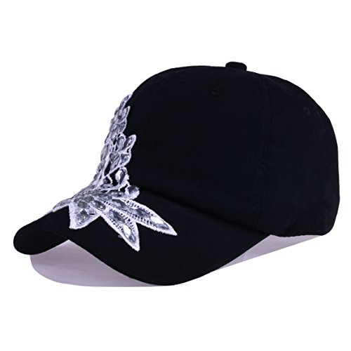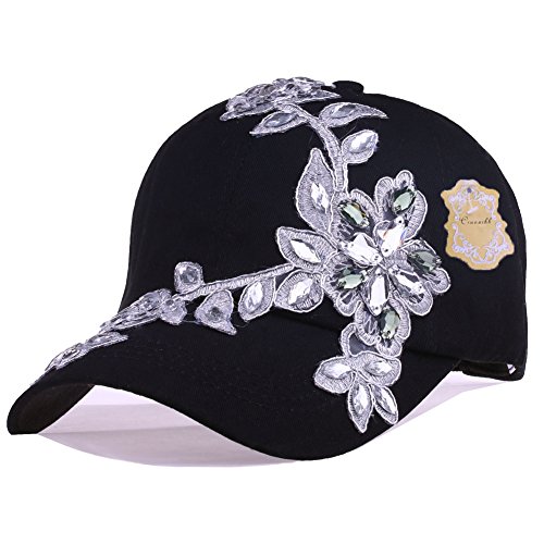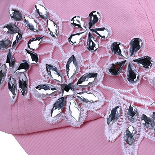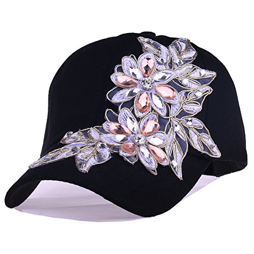 | CRUOXIBB Women Cotton Cap Sequins Bling Rhinestone Lace Flower Fashion Baseball Hat |