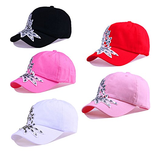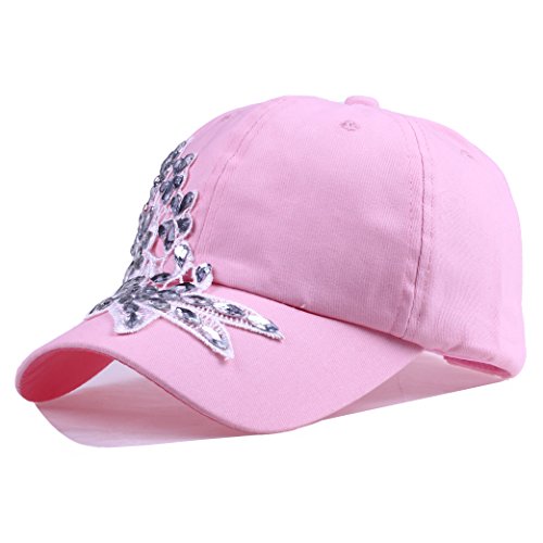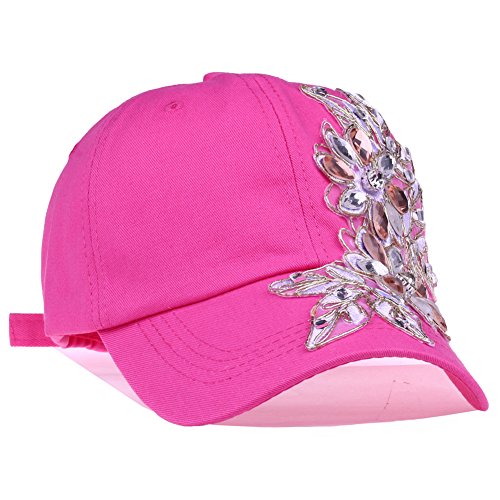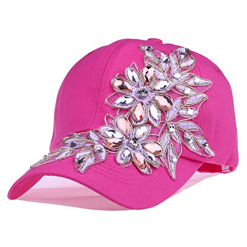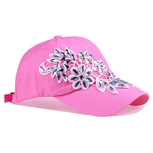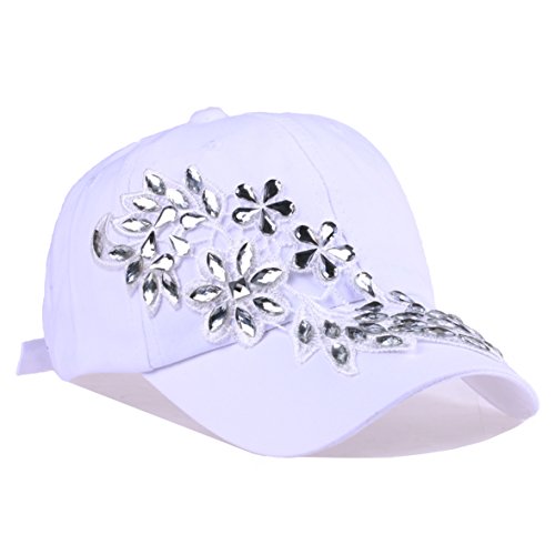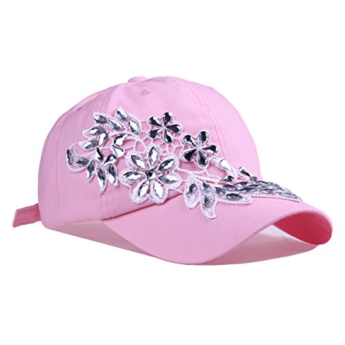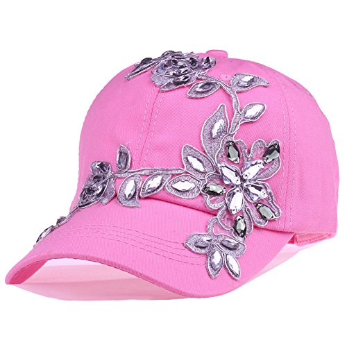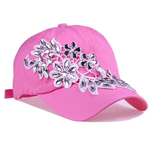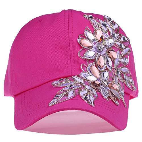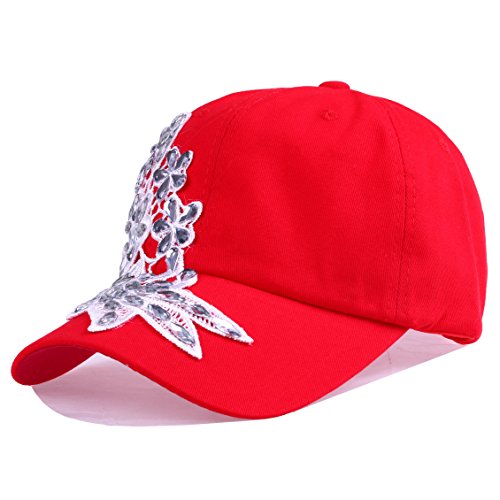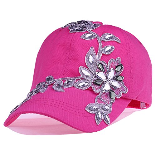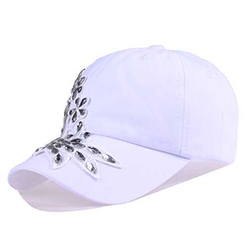 | CRUOXIBB Women Cotton Cap Sequins Bling Rhinestone Lace Flower Fashion Baseball Hat |