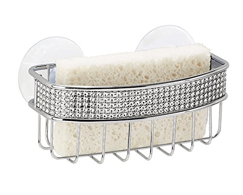 Kitchen Details Diamond Pave Sponge Caddy Holder with 2 Suction Cups, Chrome