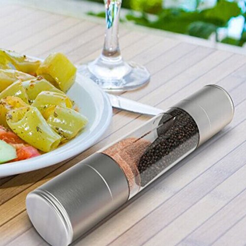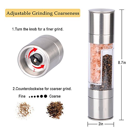 - TWO IN ONE DESIGN: Excellent space save and no need for a set as this shaker offers two in one storage so you can grind salt and pepper with the same mill, provides that freshly ground flavor in a single stylish tool.