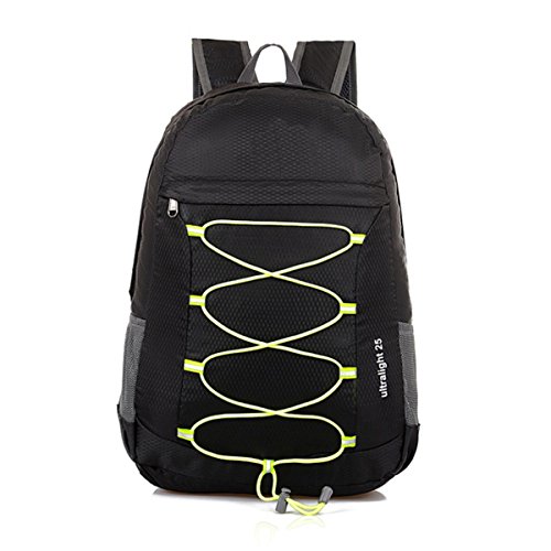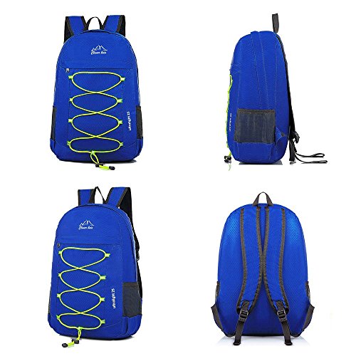 Compact: Fold into zippered inner pocket to fit anywhere. Unfold from pocket to backpack. More storage space and keep things organized: 1 x main bag: To carry what you need in the trip, 1 x interlayer: For your computer, books, 1 x zippered inter bag: A perfect place for valuables such as cash, credit cards and passport. 1 x front bag: Great for any quick access such as guide books. 2 x side mesh bag: For your travel mug, umbrella, lightweight (0. 5 Pounds) and roomy (25 liters): A true space saver. Stuff the bag into its own pocket for storage and unzip it when you reach your destination. Avoid overweight charges, simply unfold from your luggage and use it as a carry on for your excess baggage. Durable: The backpack is made from highly rip and water resistant nylon fabric, provide strengthen and long-lasting performance with minimal weight. Stress points are reinforced with bar tacking for increased longevity. Dimensions: Unfold 17. 5 x 12 x 5 inches/fold 7 x 6. 5 x 2. 5 inches.Feature