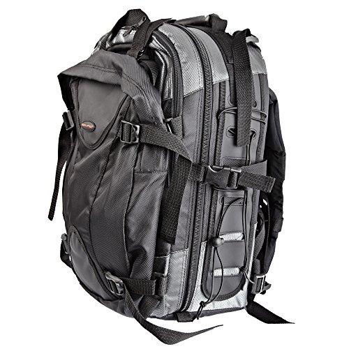 - Komfort Tragesystem hochwertiges Tragegefühl durch gepolsterte Seitenstützen und MESH Gewebe zur Körperseite. Rucksack inkl. Regen Schutzhülle aus reißfesten Zeltstoff. Dehnbare Seitenbänder zur Befestigung von Stativen. Innen Maße - 32 x 14.5 x 43 cm.