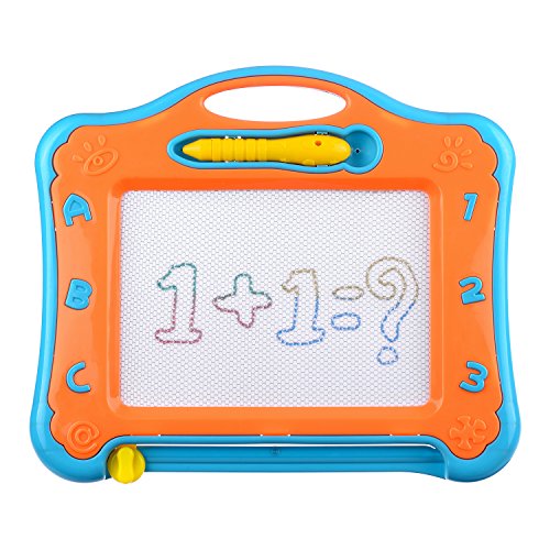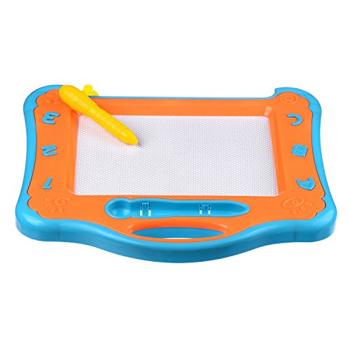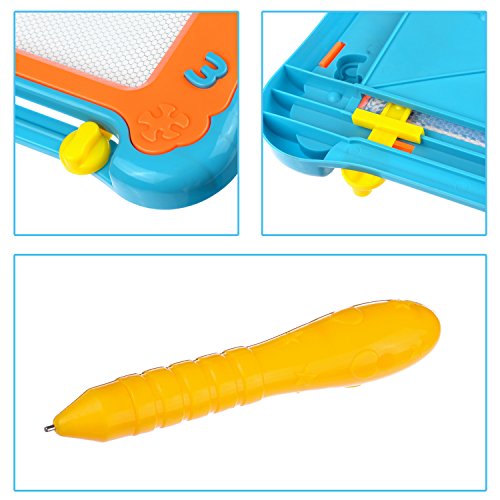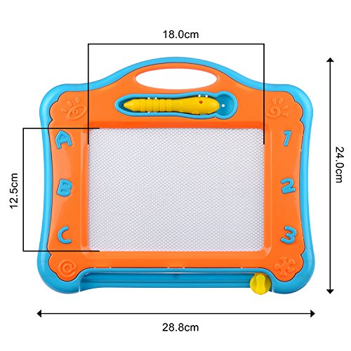 The slide knot eraser clear images on the board in one simple slide to save tons of drawing supplies. The attached stylus keeps your child's clothing clean while preventing illness from dirty crayons and chalk powder.The magnetic sketch board is lightweightand portable, Ideal for keeping children occupied during long waits in restaurants or doctor offices.