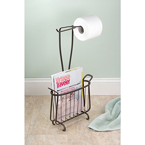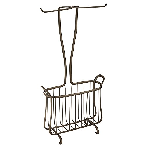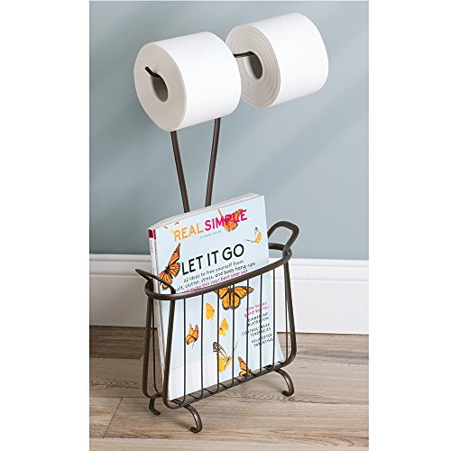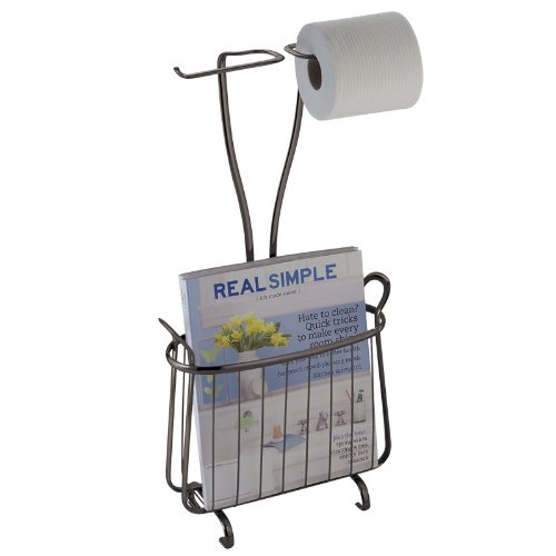 InterDesign Axis Free Standing Toilet Paper Holder and Newspaper and Magazine Rack for Bathroom - Bronze