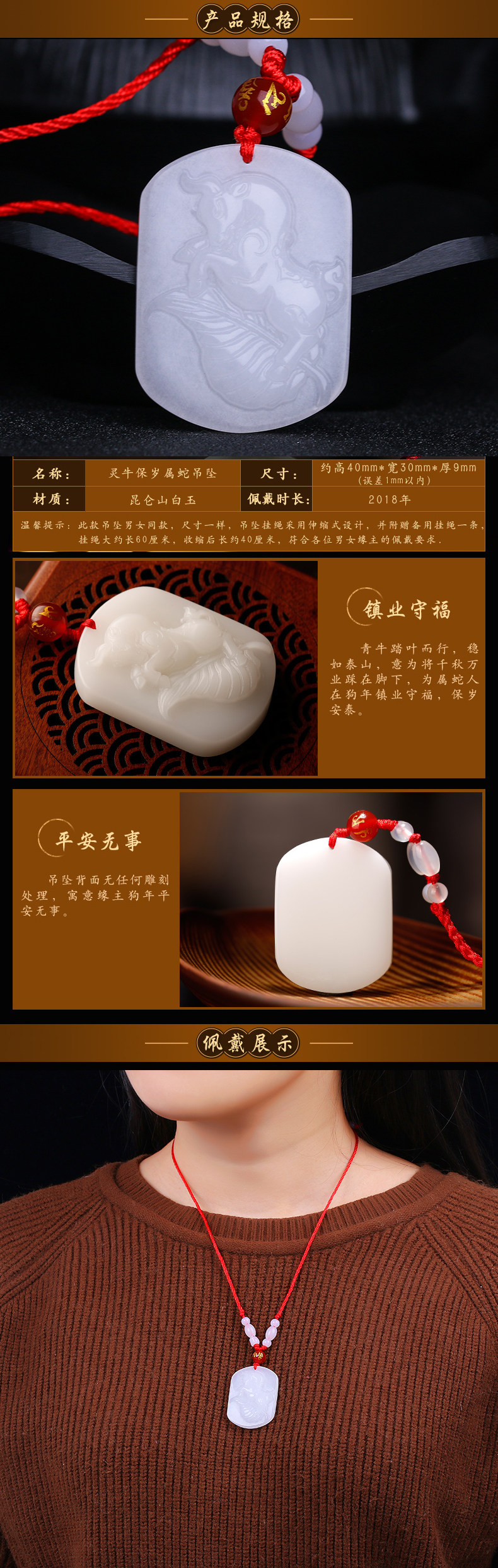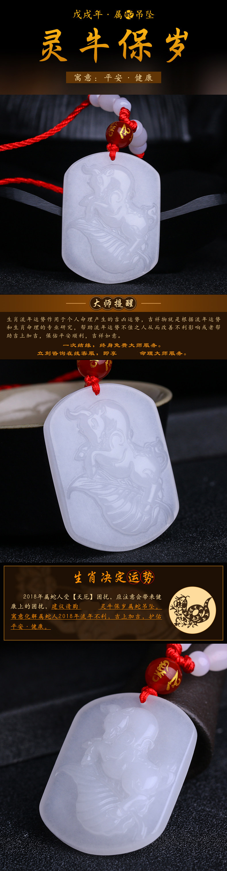开光狗年12生肖属蛇灵牛保岁玉吊坠男女款平安项坠正