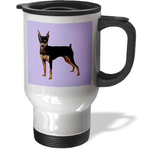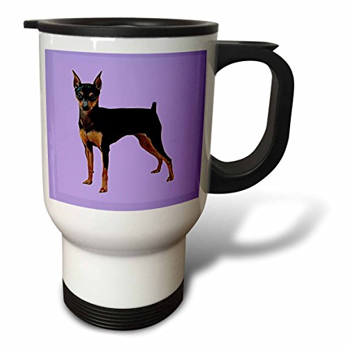 Studio : 3E Rose (Kitchen) Publisher : 3E Rose (Kitchen) Binding : Kitchen Product Description Miniature Pinscher Travel Mug is a great way to take your favorite hot or cold drink along. With a tapered bottom this stylish 14oz mug fits in a standard cup holder and features an easy-grip handle with thumb rest, slide opening lid and slanted drinking surface. This travel mug is made of stainless steel. Not microwave safe, hand washing is recommended. 0