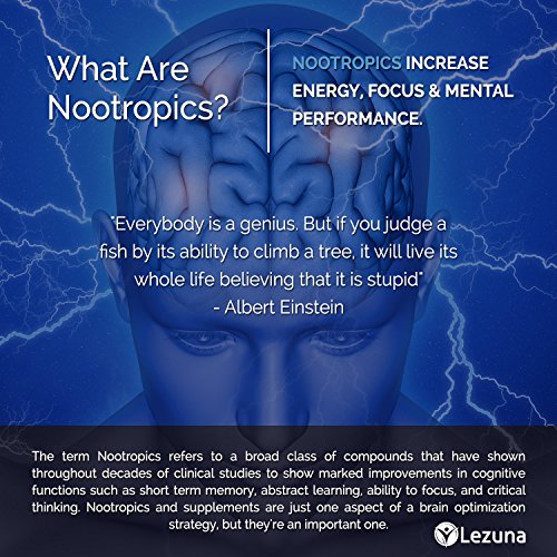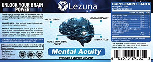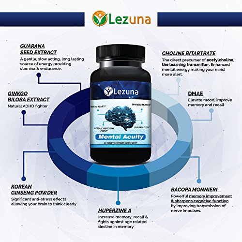 Studio : Me First Living Publisher : Me First Living Binding : Health and Beauty Product Description Why This Formula Works | There are supplements for weight loss, vision and supplements for gaining muscle. But what about a supplement for the brain? Why don't many people consider taking a supplement to help their brain function at its highest capacity? Well, if you're thinking about taking a nootropic, we have something you're going to be excited about, Lezuna Mental Acuity. Why You'll Notice A Difference | Bacopa is used as an herbal brain tonic for improving memory, learning, and concentration. Its recorded use goes back at least 3,000 years. Neurotransmitters are brain chemicals that regulate every aspect of your life, including your mood and ability to focus, concentrate, learn, and remember. Bacopa is a master neurotransmitter regulator that shifts production of these brain chemicals up or down as needed. In one study, bacopa was tested against both the herbal supplement ginseng and the popular smart drug Modafinil. Bacopa exhibited superior cognitive benefits to both. Choline bitartrate produces a number of Nootropic effects including improved memory, cognitive boosts, and mental stimulation. One large human study, with 1391 participants, found that higher dietary choline intake was associated with lower rates of white-matter hyperintensity and better cognitive performance. Choline is the direct precursor for acetylcholine, the 'learning transmitter'. Your brain transforms choline into acetylcholine to allow it to function properly. Acetylcholine is involved in transmitting signals across neurons. You really can't overstate how important acetylcholine is to your brain Benefits You'll Notice | Improved cognitive, decreased anxiety, increased focus, attention, learning memory. 0
