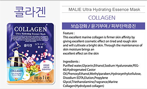 -. Feature : Malie Korean Essence Facial Mask Sheets, 13 Combo Pack [ 12 Facial Masks + 1 Hand Mask ] / Minimizes signs of aging by smoothing fine lines and leaving your skin feeling refreshed and radiant / Reduces inflammation while promoting epidermal cell growth and improving skin's elasticity / 16 different types of facial masks will help your skin more elastic, healthier, and clearer (as pictured) / 1. Aloe 2. Coenzyme Q10 3. Collagen 4. Cucumber 5. Green Tea 6. Pearl 7. Placenta 8. Pomegranate 9. Potato 10. Red Ginseng 11. Royal Jelly 12. Seaweed 13. Snail 14. Snake 15. Stem Cell 16. Vitamin