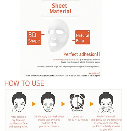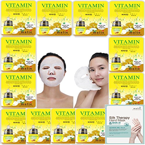 -. Title : [Malie] 12 pcs Ultra Hydraiting Essence Mask + 1 pcs Slik Therapy Hand Mask, ( 13 pcs Total ), Korean Facial ask Sheet, Skincare Moisturizing ... ...