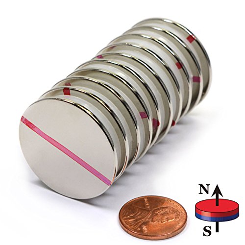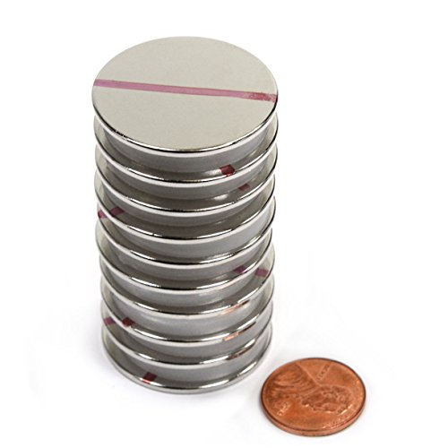 CMS Magnetics® Grade N52, the Most Powerful Disc Neodymium Magnets, 1.26” Diameter x 1/16" Thick, 50% Stronger than Grade N35 – Pack of 10