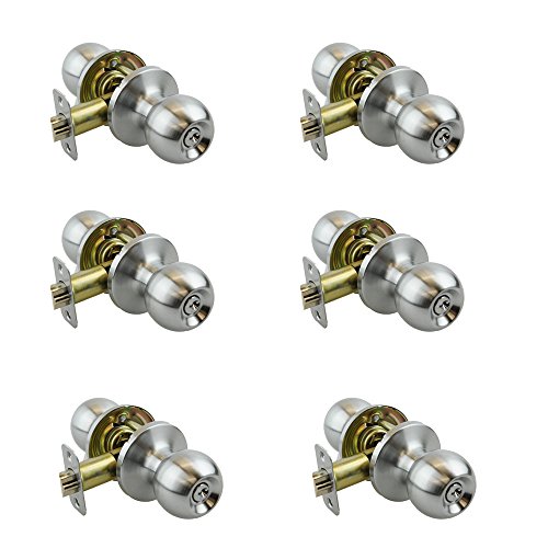 -. Feature : 6 Pieces of Entry Keyed Door Knobs in Satin Chrome / All Locks with the same key, 2 keyed per lock / Garde 3 Equivilent / Installation Instruction and Template