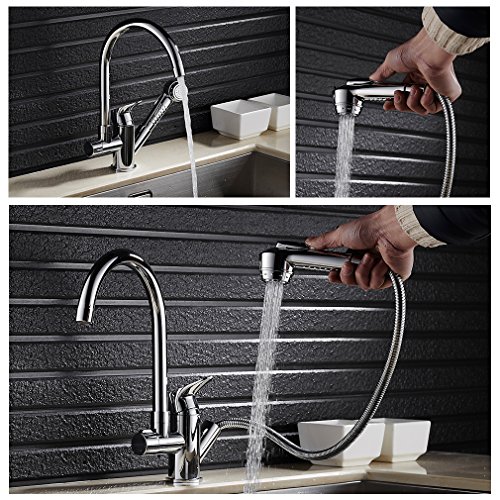 -. Feature : Um 360 ° drehbar und benutzerfreundliches Design mit herausziehbarer Geschirrbrause / Diese Küchenarmatur ist für warmen und kalten Wasserversorgung / Keramik Kartusche mit 50 Millionen Mal Test für wasserdicht, was eine längere Lebensdauer. / Einfach mit Standard 3/8 DIN-Anschluss zu installieren, Leicht zu reinigen und zu pflegen