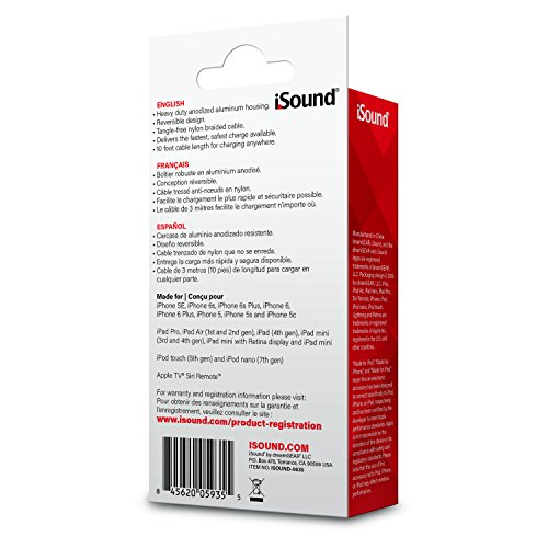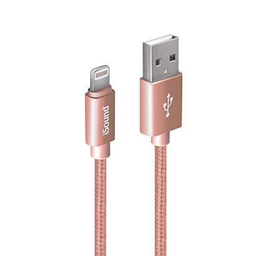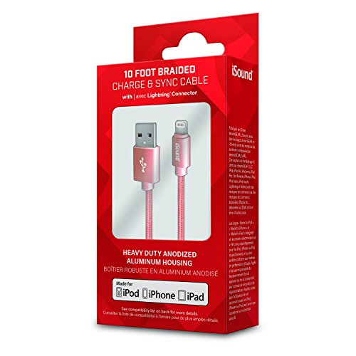 ISOUND - Lightning Cable 10ft Charge & Sync braided cable, Apple certified for iPad, iPhone, iPad– rose gold