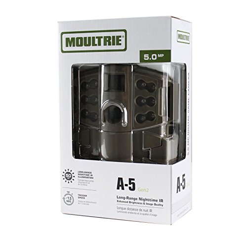 -. Feature : 5 Megapixel resolution / Less than 1.5 second trigger speed / 40 Ft detection range / 50 Ft flash range / Long-Range nighttime infrared / Redesigned from the ground up, the A-5 Gen2 offers Moultrie quality at a value price - giving you the most for your money... and your hunt / The Moultrie Gen2 A-5 has been updated with a new look, shorter delay options and Multi-Shot mode to ensure you are getting the most out of your game camera / Camera resets rapidly after image capture, taking under 1.5 seconds after a motion trigger until the camera is fully ready to detect motion and capture valuable field intelligence. / The A-5 can be set for 10-second, 30-second, 1-minute or 5-minute delays - all with the flip of a switch