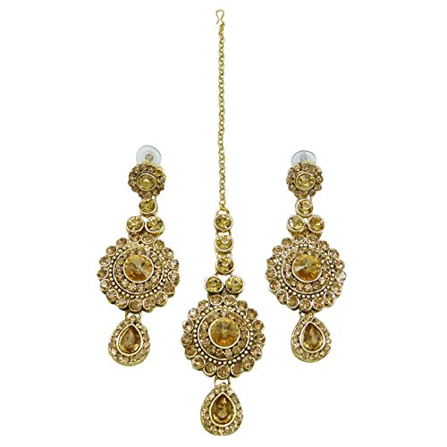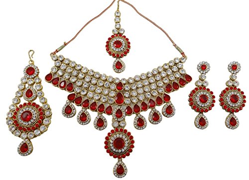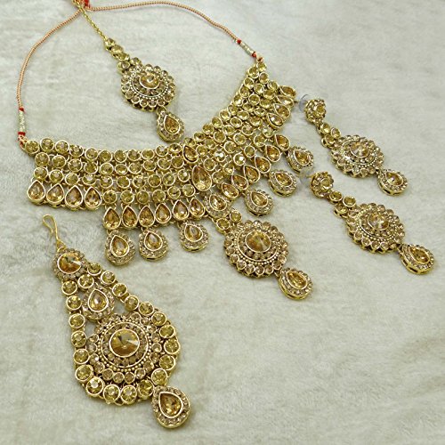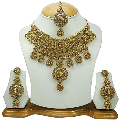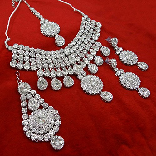 -. Binding : Jewelry -. Brand : Banithani -. Department : womens -. Feature : This set includes one necklace, pair of earrings, Passa and a maang tikka / Sale For: 1 Necklace Set; Metal: Alloy / Size: Earring Size: 3.2" X 1.1" Inches; Tikka Size: 7.5" X 1.1" inches; Passa Size: 4.7" X 2.0' Inches / SKU: BNS8437A ; Made In India / Discover more Beautiful Jewelry from our collection, click on the link "Banithani" above the title. -. Label : Banithani -. Manufacturer : Banithani -. Model : BNS8437A -. MPN : BNS8437A -. PartNumber : BNS8437A -. ProductGroup : Jewelry -. ProductTypeName : FASHIONOTHER -. Publisher : Banithani -. Studio : Banithani -. Title : Banithani Indian Bollywood Necklace Set Beautiful Designer Wedding Jewelry Gift For Women
