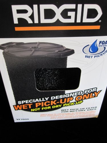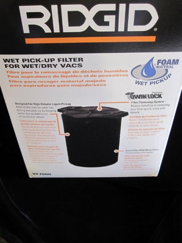 -. Feature : The Ridgid VF7000 is Designed for High-Volume Liquid Pick-Up ONLY / Foam Filter with Resin Core Cleans Easily with Water / Qwik-Lock Filter Fasting System provides Easy Install/Removal / Use for Liquid and Wet Debris ONLY / Fits ALL 5-20 Ridgid Canisters and Many Craftsman