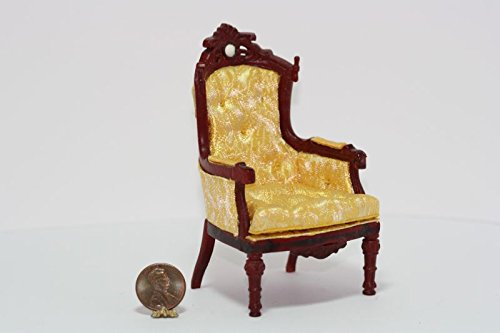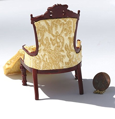 -. Title : Dollhouse Miniature Furniture - Gold Damask Victorian Chair