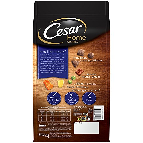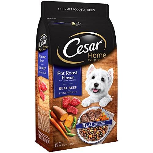 -. Feature : Contains one (1) 3.75-lb. bag of CESAR Home Delights Pot Roast Flavor with Garden Vegetables Dry Small Breed Dog Food. Beginning with meat, we've made a nutritious meal guaranteed to please / CESAR Dry Dog Food is made with real beef as the first ingredient for a taste dogs love. This gourmet dog food is specially crafted with 26 nutrients that small breed dogs need / At the CESAR brand, our mission is to provide food that your furry best friend will love, made with the nutrition and quality every dog deserves / CESAR Dry Dog food has a re-sealable zipper on every bag to help maintain freshness. 100% Nutritionally Complete & Balanced for all life stages for small dogs / If feeding CESAR Home Delights Pot Roast Flavor with Garden Vegetables dry dog food for the first time or changing formula, we sest you blend increasing amounts of the new formula