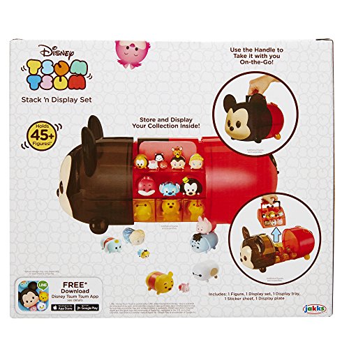 Collect, stack and display your favorite Disney Tsum Tsum characters with the new Mickey Stack ‘n Display Set. Slide open this translucent case to reveal the stacking station tray and find out how high you can stack your collection. The movable shelves provide a perfect fit for all of your Tsum Tsum figures and blind pack accessories. The Mickey Stack ‘n Display Set holds 45+ figures in compartments of varying sizes designed to store small, medium, and large figures. This unique case allows you to organize your collection and display your favorite characters for more stacking fun. The Mickey Stack ‘n Display Set includes one exclusive large corresponding Tsum Tsum figure! Start stacking! Ages 6+Feature