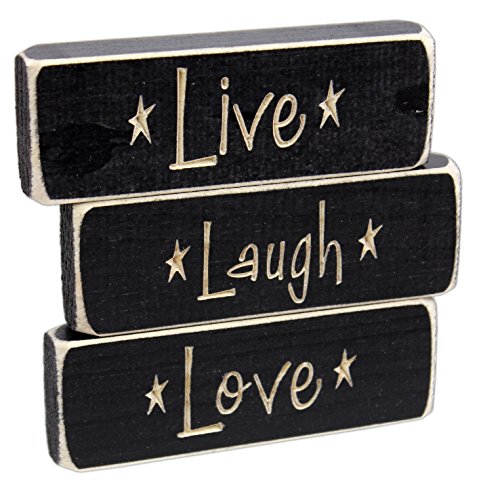 Set of 3 Heartwood Hollow 5" x 1.5" Inspirational Engraved Wood Block Signs (Live Laugh Love)