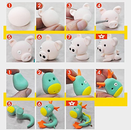 What you get: pack of 36 modeling clay in 36 colors (0.6 oz per one), some small tools to help with shaping and decorating, sealed boxs to keep usused clay.