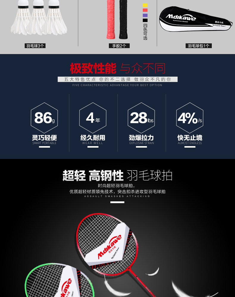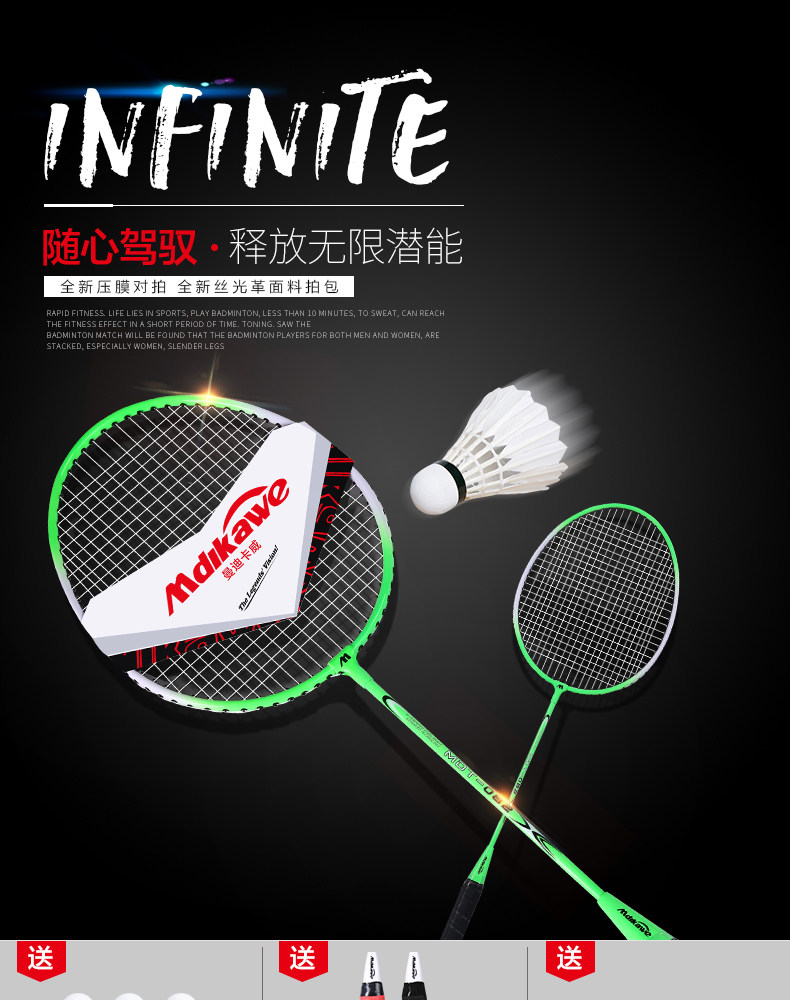 ?正品超轻羽毛球拍2支装家庭情侣款超钢性复合球拍