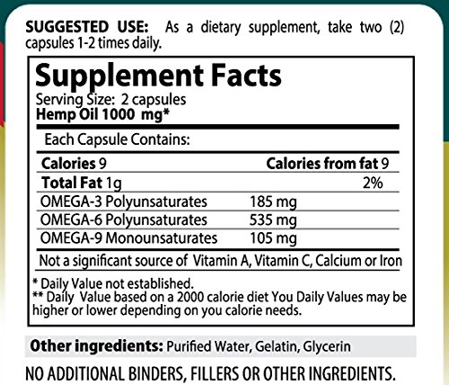 Hamilton Healthcare's Hemp Oil 1000 mg per serving with Omega 3-6-9 Cold pressed premium Hemp Oil. Hemp seed oil is believed to be the most unsaturated oil derived from the plant kingdom