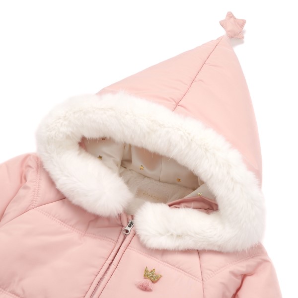 탈부탁 퍼 트리밍 장식이 깨끗한 이미지를 더해 줍니다. 핑크 컬러로 사랑스런 코디가 용이합니다.