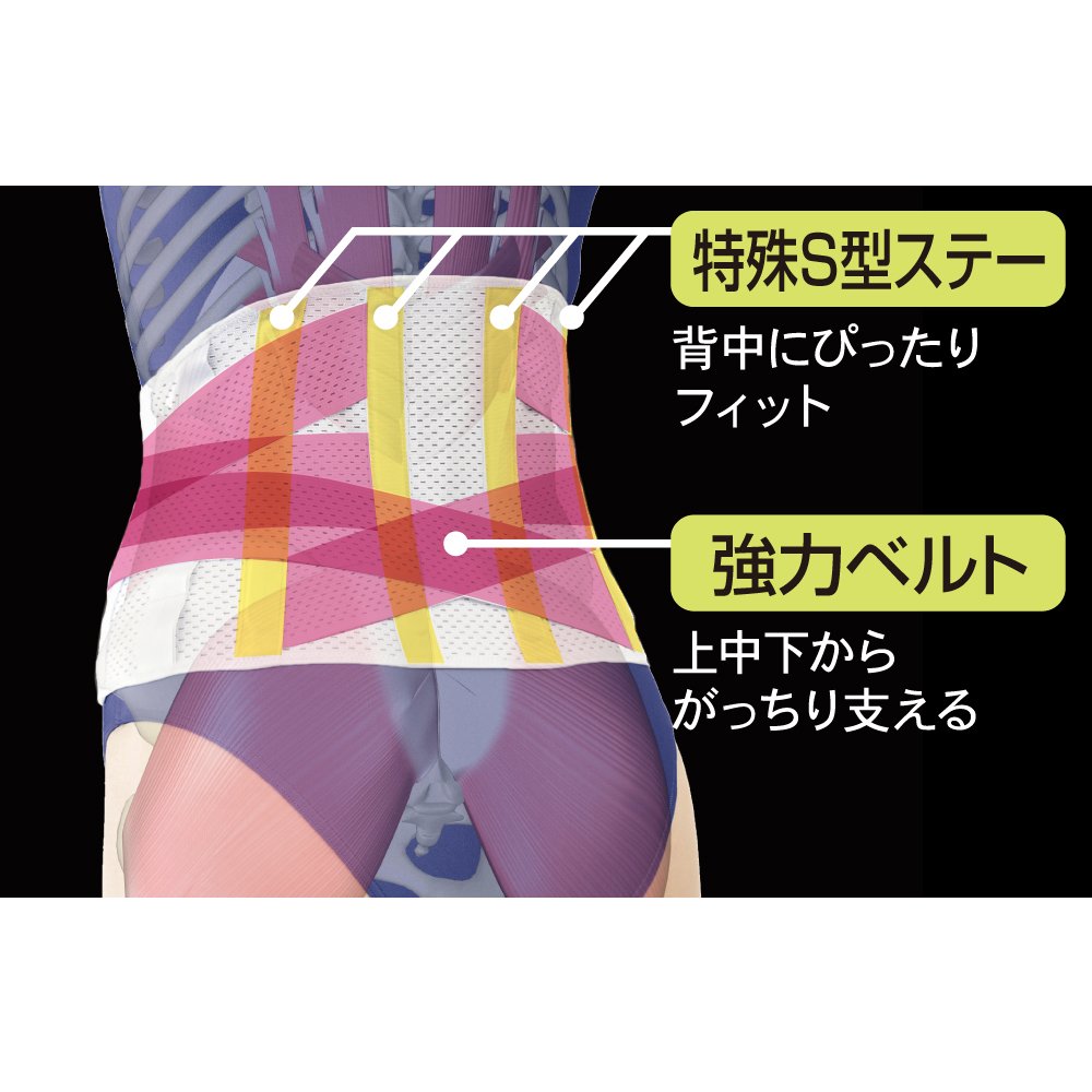 Three strong rubber belts and four special S-type stays on the back support the waist perfectly to support the waist and reduce the burden on the waist.