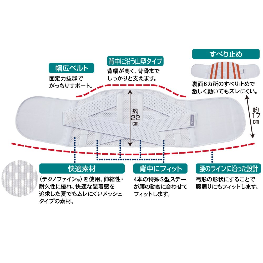 It is a mesh-type supporter material that is superior in elasticity and durability, and is resistant to stuffiness even in the summer pursuing a comfortable wearing feeling.