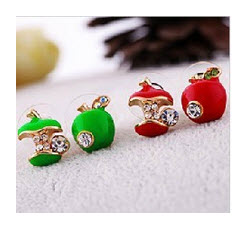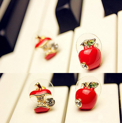 Fashion indah tetes merah glasir apel asimetris anting kristal Fashion beautiful red drops of apple glaze asymmetric crystal earrings JEW SJA0846535262 WFS qty000