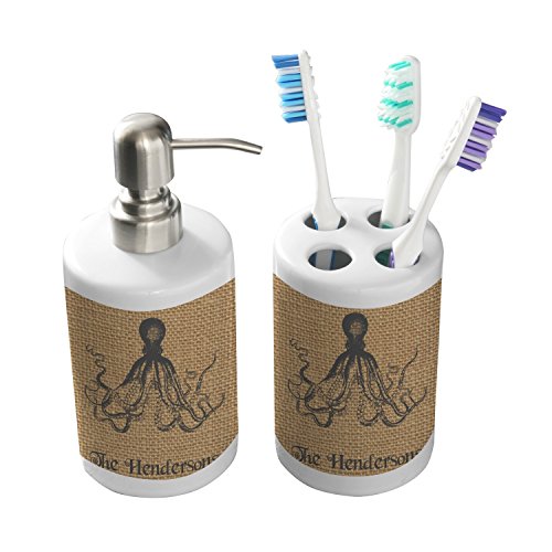 -. Brand : RNK Shops -. Color : Brown -. Feature : YOU WILL RECEIVE AN EMAIL WITH A LINK TO CUSTOMIZE YOUR ORDER WITHIN 1 BUSINESS DAY / Custom P.R.Inted with Your Design / Easy to clean / 2 Piece Set -. Label : Mom Innovations -. Manufacturer : Mom Innovations -. MPN : cp-crmc-bthrm-acc+387828 -. PartNumber : cp-crmc-bthrm-acc+387828 -. ProductGroup : Home -. ProductTypeName : HOME_BED_AND_BATH -. Publisher : Mom Innovations -. Studio : Mom Innovations -. Title : Octopus & Burlap P.R.Int Bathroom Accessories Set (Ceramic) (Personalized)