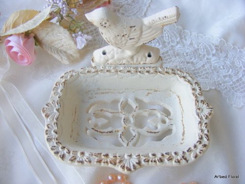 -. Title : Cast Iron Bird Victorian Soap Dish ~ Antique White