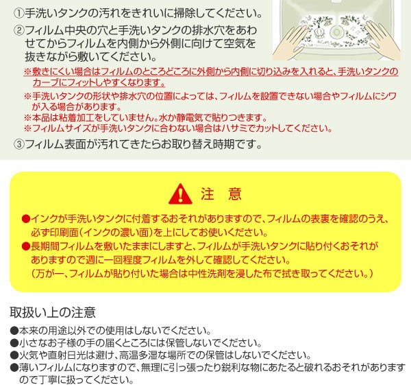 | 本品フィルムをトイレタンクに敷くだけ! 殺風景なトイレタンクを華やかに演出!小さめタンクにもフィットしやすいスモールサイズ。汚れたら取り換えるだけ! |