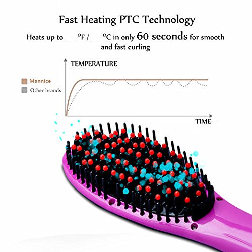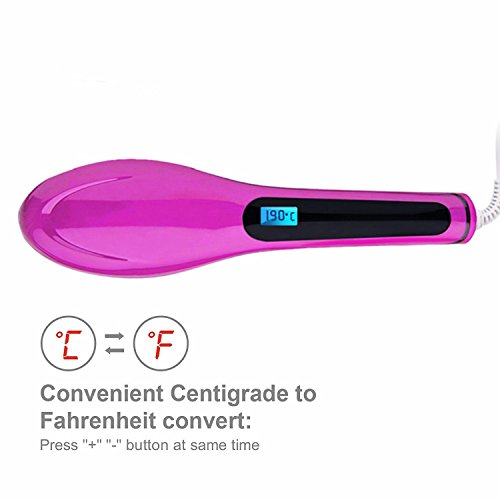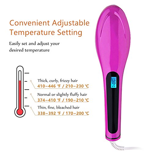 - ✿FAST HEATING UP : This straightener brush design for reaching an ideal temperature in seconds. Simply turn it on, hair straightening brush temperature will be displayed on the LED screen. Wait less than a minute and then straighten your hair. The adjustable heat temperatures from 80℃(176℉) to 230℃(450℉) allow you to match your specific hair type: thin, fine, bleached, wavy or curled.
