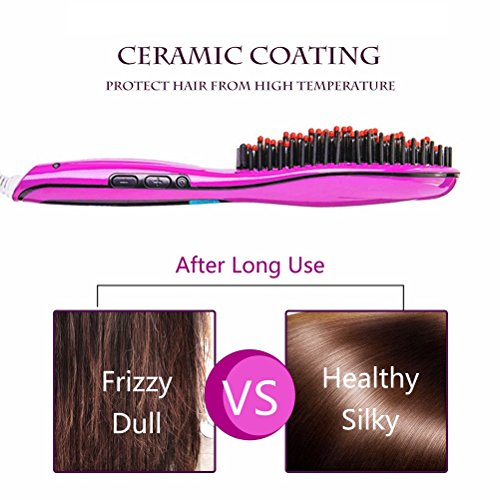 - ✿HEALTH CARE FOR YOUR HAIR : This item is an electric hair straightener brush mainly of daily care, it helps detangle your hair and straighten hair instantly while leaving behind a healthy shiny, sleek, frizz-free hair. Easily solve hair knotting, reduce pain and hair broken, repair the hair quality of harm. Achieve beautiful straight salon quality hair that will last for the entire day!