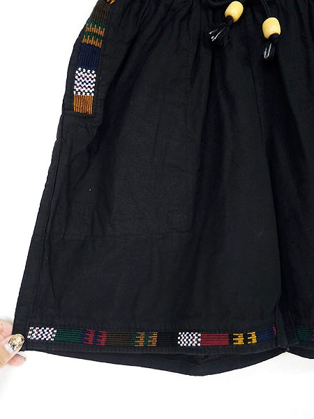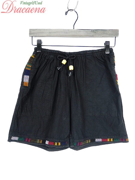 Ladies ブランド- カラー黒 メール便不可 コンディション★★★ 素材コットン 表記サイズ記載なし 実寸サイズ 着丈 38 cm ウエスト 58cm 〜 80cm (23インチ〜31インチ) レングス(股下) 5 インチ(13 cm) 股上 26 cm 太もも幅 25.5 cm 裾幅 26 cm ※ウエスト・ヒップ以外は平置き採寸