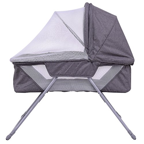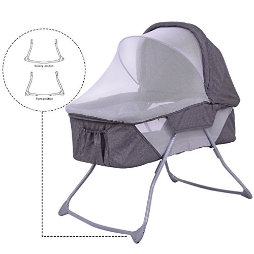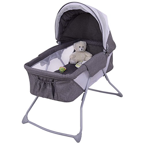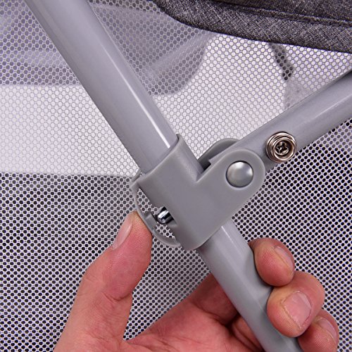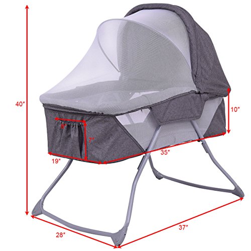 Description: Bassinet provides your baby a safe and comfortable place to sleep anywhere. This bassinet comforts your infant and is lightweight enough to be easily moved from room to room. Breathable mesh sides allow generous airflow, while the low height lets you check that your child is sleeping safely and peacefully.The removable net allows for air flow and circulation to keep your baby comfortable and cool during use. Keeps insects away while providing shade. Features: Spacious bassinet with a double canopy and sleeping pad Transforms into a rocking cradle by rotating legs in upward position Wonderful sleep spot for newborns with a gentle rocking action Lightweight and versatile for easy portability Adjustable/removable mosquito net Mosquito net provides the newborn with constant fresh air circulation Quick folding for easy store Equipped with a detachable and washable mat Specification: Color: Gray Material : Canvas, PP and ABS Product Dimension : 33.5"(L) X 20.5(W) X24"(H) Product Weight : 14.6lbs Iron pipe Diameter : 0.8" The thickness of iron pipe : 0.04" Weight Capacity : 22 lbs 0 |