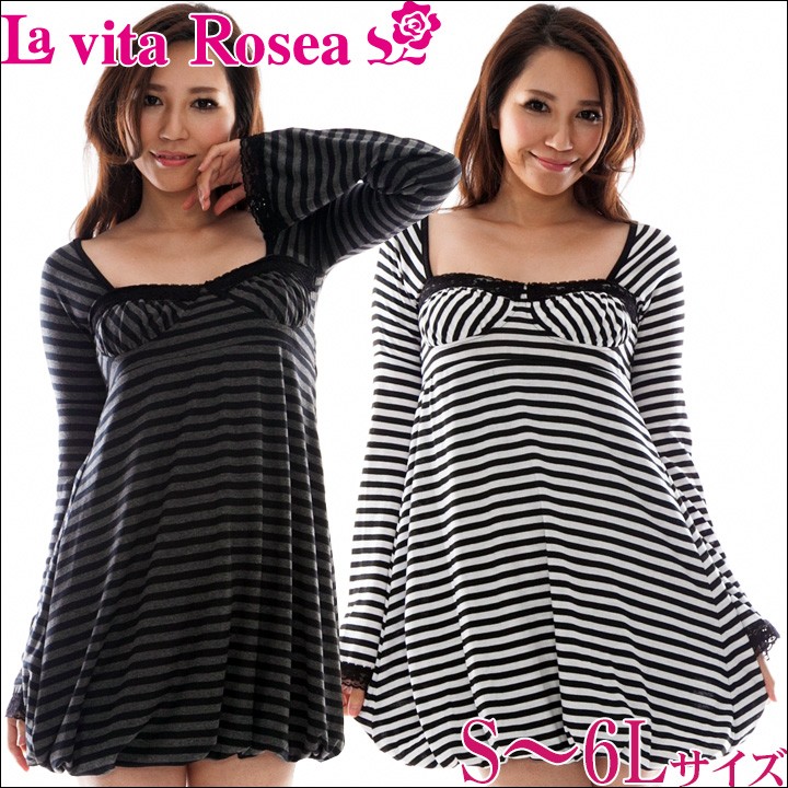 ボーダーバルーンワンピース(QQ) 大きいサイズ 春 セクシー レディース ギャル服 ギャル 大人 13号 15号 17号 19号 LL 2L 3L 4L 5L 6L 6L