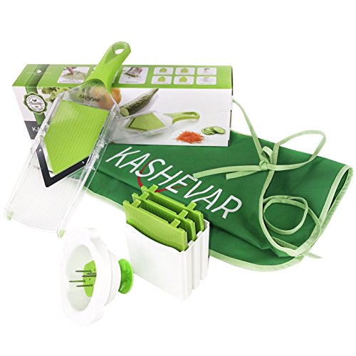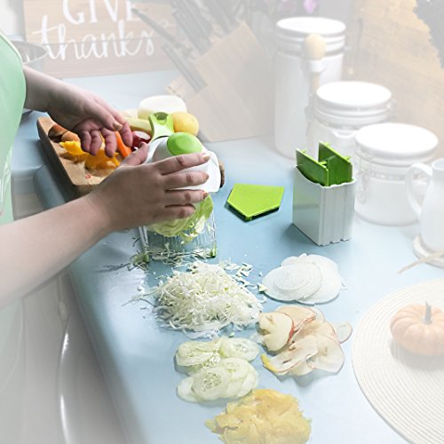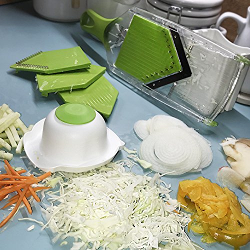 HEALTHY EATING: Our top rated mandolin slicer with four easily switched attachments is a great kitchen gadget helping to slice vegetables, potato, fruits and even cheese with the best cutting results. This professional veggie slicer is ready for a heavy duty job. Top-quality plastics keep your food clean and free of chemicals.