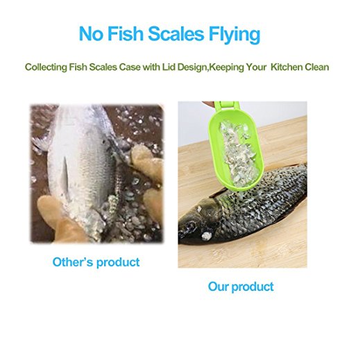 No Fish Scales Flying: The fish scales cellecting case with lid design cellects fish scales when you use,so no fish scales flying,keeping your kitchen clean and saving your housework time