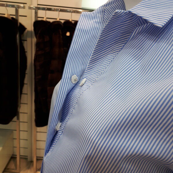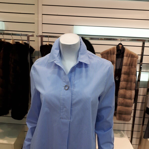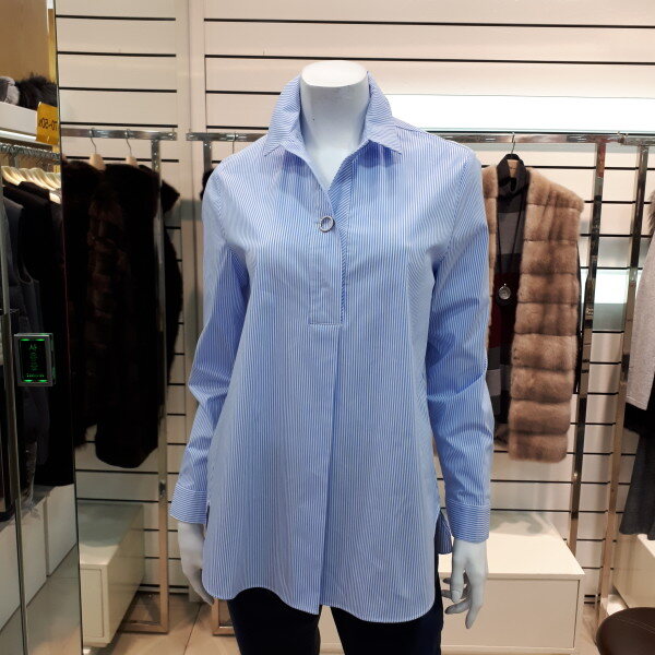 스트라이프로되어있는 셔츠 입니다.똑딱으로 세련스럽게 포인트을주어 캐쥬얼 하게 코디하기 좋습니다.